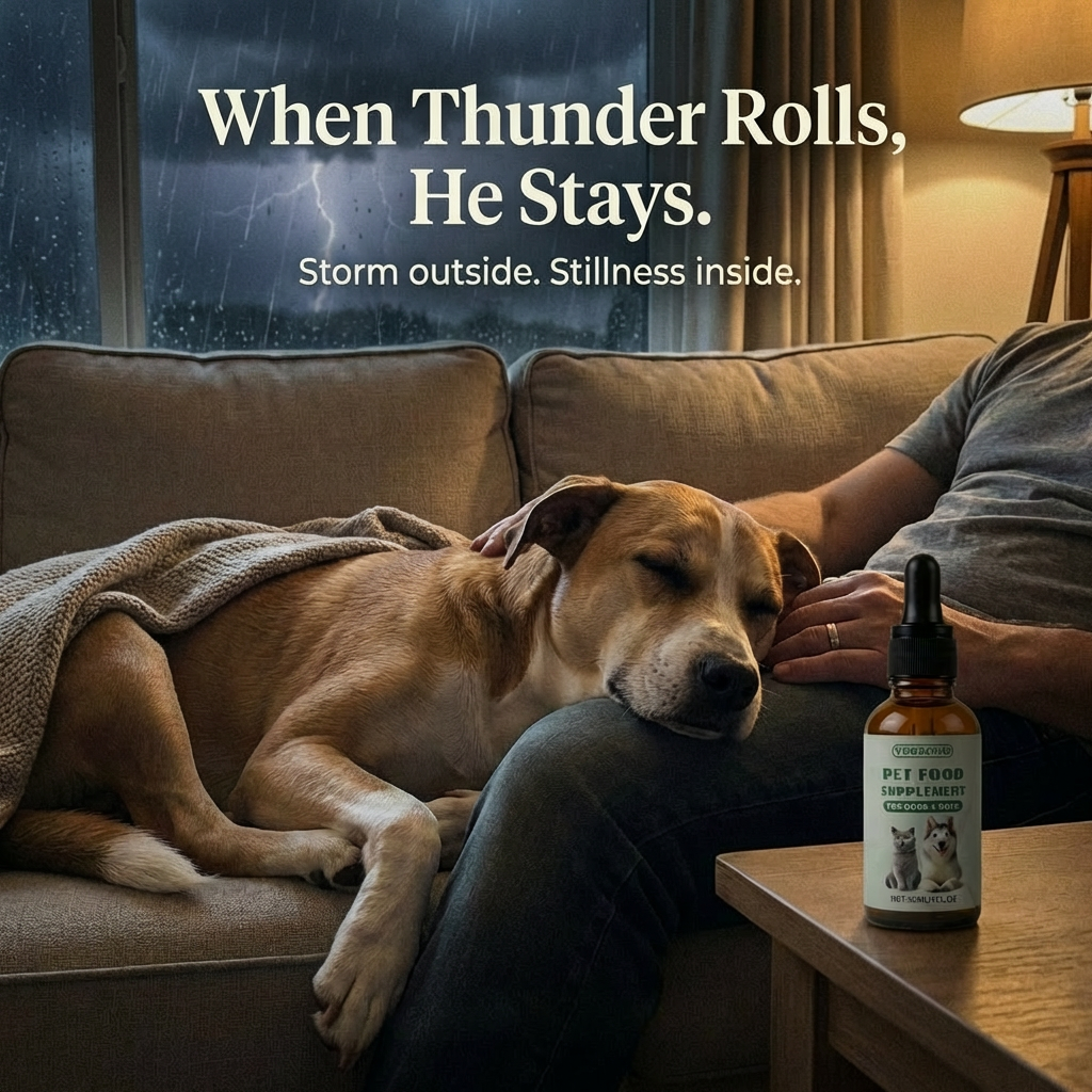 The next time thunder hits, imagine steady breathing instead of shaking tags. No closet escapes. No clawed doors. Just your dog staying close, calm, grounded, safe.